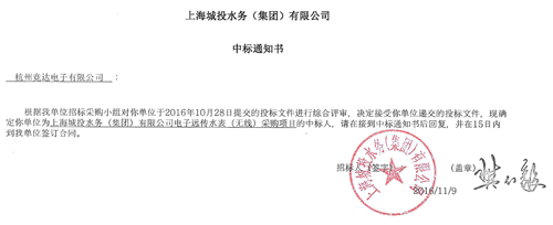 上海城投集團(tuán),通過(guò)招標(biāo)方式,實(shí)施城市舊表改造工程,競(jìng)達(dá)公司中標(biāo)!目前已實(shí)施的,主要是老小區(qū)改造,大部分在戶外,墻體內(nèi),采用防凍型無(wú)線遠(yuǎn)傳水表。目前,競(jìng)達(dá)公司為上海老小區(qū)改造遠(yuǎn)傳表3萬(wàn)只以上,運(yùn)行穩(wěn)定,抄表成功率>99%!獲得客戶好評(píng)。