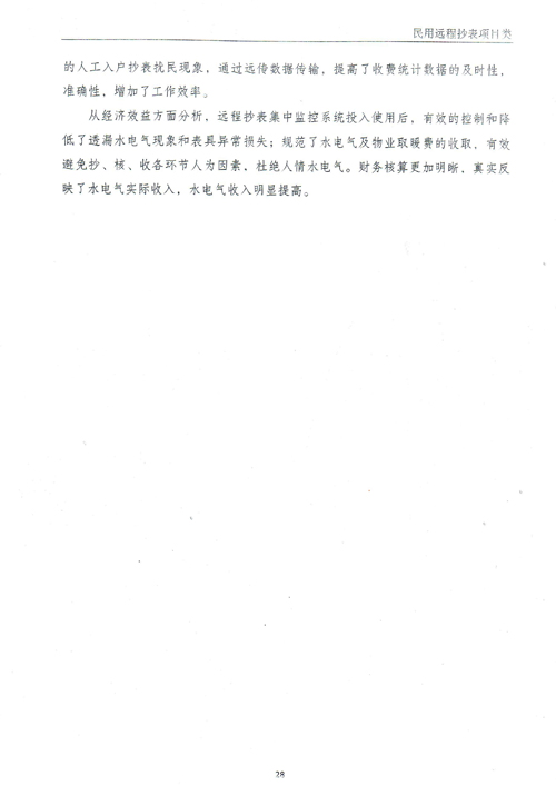 The "Xushui Base Civil Water and Electricity Remote Meter Reading System" includes 4,327 single-phase electronic prepaid energy meters, 4,464 electronic smart water meters, dozens of data concentrators and remote meter reading system software produced by our company. It has been put into use since July 1, 2009, and has been running stably. The meter reading accuracy rate has reached more than 99%, which effectively improves the measurement accuracy, avoids the unfavorable phenomena such as inaccurate measurement or difficulty in grasping the collection funds caused by human factors in the reading, verification and collection links, and avoids the inconvenience caused by entering the household to check the meter, and improves the efficiency of property management. The implementation of this project has been highly praised by users.