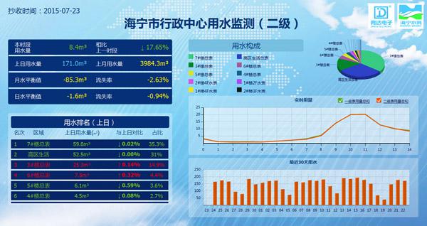 本系統(tǒng)由海寧市水務(wù)集團和杭州競達電子有限公司共同承建, 于2014年底開始組織實施建設(shè),2015年7月完成驗收。系統(tǒng)工程包含了大口徑水表、水表井、管網(wǎng)的改建實施;遠程抄表建設(shè)以及一級、二級、三級、四級水表的動態(tài)水平衡實時監(jiān)測和漏水異常實時預警。工程對區(qū)域內(nèi)水網(wǎng)規(guī)格、路線走向和供水區(qū)域等全面摸底,集中改造全部水表為智能化遠傳水表,徹查地下管網(wǎng)跑冒滴漏等情況,對腐蝕較大的管路進行廢棄改造和更新,累計共改造各口徑智能水表62個,開挖改造水表井14口,改造管網(wǎng)11條,新查隱蔽漏水點4處。系統(tǒng)于今年4月建成、投入運行并即時警示行政中心一二級水平衡流失率達39.5%。經(jīng)組織系統(tǒng)排摸和實地查漏,發(fā)現(xiàn)管網(wǎng)地下隱蔽漏水點一處,并完成氣割封堵作業(yè),實現(xiàn)月節(jié)水達2500噸,月節(jié)水費達1.1萬元,系統(tǒng)實時水平衡流失率從39.5%直降至1.3%的系統(tǒng)精度誤差,節(jié)水效益非常顯著。