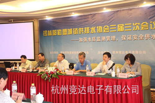內(nèi)蒙古錫林郭勒盟城鎮(zhèn)供排水協(xié)會三屆三次會議于2012年10月15日在杭州召開,杭州競達電子有限公司協(xié)辦。會議主題為“加強水質(zhì)監(jiān)測管理,保證安全供水”。浙江省水協(xié)秘書長姚水根、水質(zhì)專家(教授級高工)杭州市水質(zhì)監(jiān)測站站長董民強、內(nèi)蒙古錫林郭勒市水協(xié)主席席曉東、內(nèi)蒙古水協(xié)秘書長盧平均、杭州競達電子有限公司總經(jīng)理席科以及錫林郭勒盟城鎮(zhèn)供排水協(xié)會的各會員單位參加了本次會議。由內(nèi)蒙古錫林郭勒市給排水公司副總張喜枝主持。